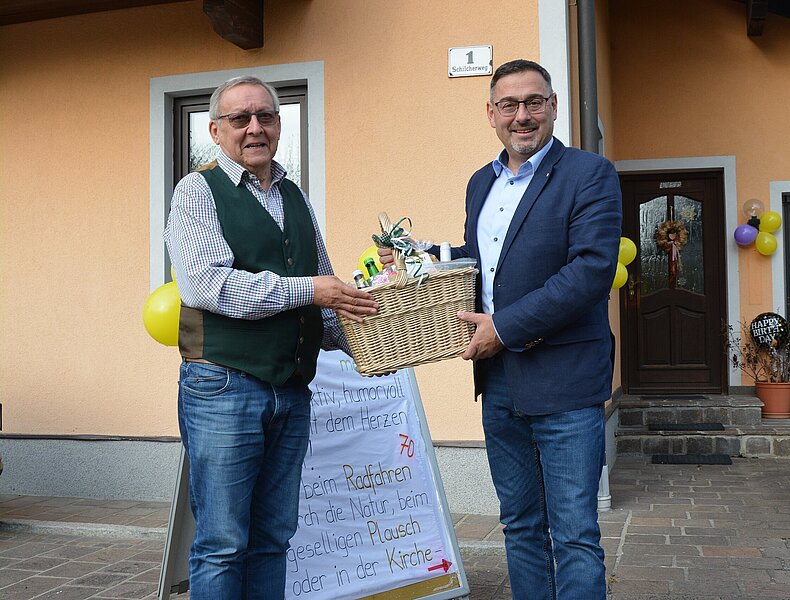 „Franz Weinberger war und ist ein Mensch, der mit Leidenschaft, Weitblick und großem Verantwortungsbewusstsein für die Menschen in unserem Bezirk gearbeitet hat. Sein Einsatz für die OÖVP und für unsere Region verdient höchste Anerkennung“, so Bezirksparteiobmann LAbg. Klaus Mühlbacher, der gemeinsam mit OÖVP Bezirksgeschäftsführer Bgm. Michael Huber die besten Wünsche und einen regionalen Geschenkskorb zum 70. Geburtstag überbrachte.